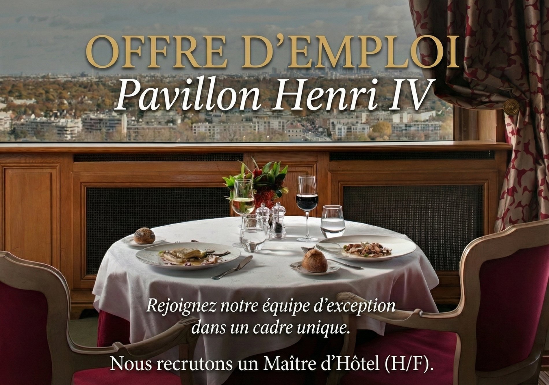 Nichée sur les hauteurs de Saint-Germain-en-Laye, avec une vue imprenable sur Paris, le Pavillon Henri IV, hôtel 4 étoiles et restaurant gastronomique, recherche un(e) Maître d’Hôtel pour garantir un service d’exception et coordonner l’équipe de salle.